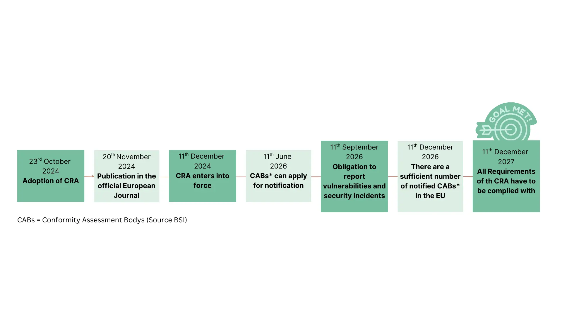 Der CRA trat bereits 20 Tage nach seiner Veröffentlichung im Amtsblatt der EU im Dezember 2024 in Kraft. Die Umsetzung erfolgt stufenweise, um Herstellern Zeit zur Anpassung zu geben. Ein entscheidendes Datum ist das Ende des Jahres 2027: Bis dahin müssen alle neu auf den Markt gebrachtenProdukte die vollständigen Anforderungen erfüllen.