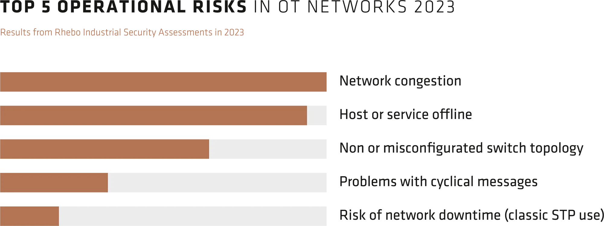 Anomalies indicating network overload were found in all OT networks. While in IT this may only lead to amusingly frozen faces during video calls, in OT it can jeopardize real-time communication and thus system availability and occupational safety.